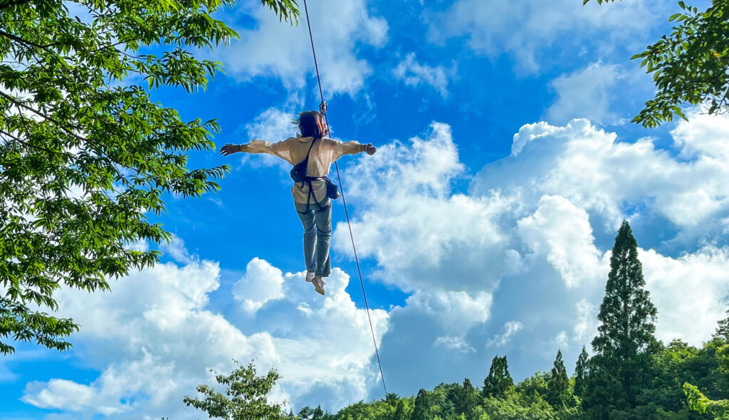 Located in Mominoki Park, owned by Hiroshima Prefecture, our forest is a designated Forest Bathing Forest and offers a magnificent setting for our dynamic high tree-top course. In addition, we have camping sites, BBQ areas, a cafe, and more. It’s the perfect place for families, friends, and groups to enjoy together!