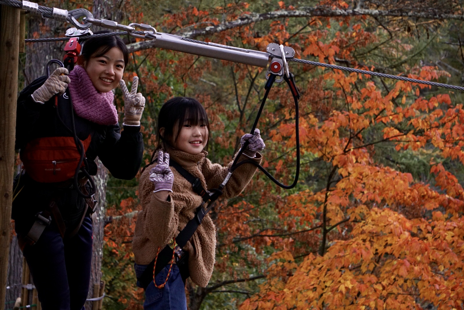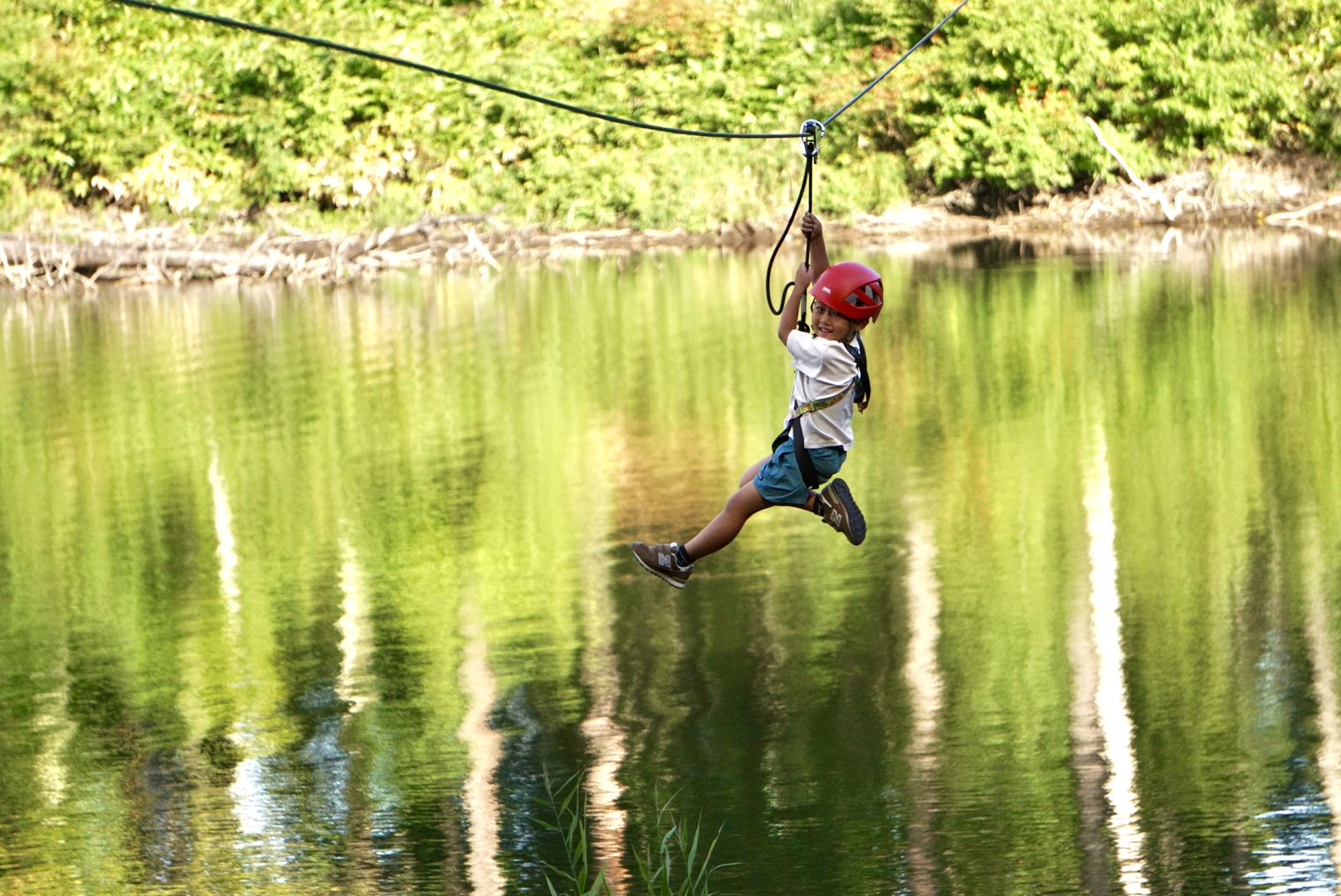 There are two zip slides through the forest, and two zip slides over the exhilarating Ozahoshi Pond.