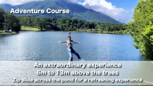 Located on the shores of Ozahoshi Pond in Nagano Forest Village, a landmark of the Iizuna Plateau, Forest Adventure Nagano is easily accessible, just a 25-minute drive from central Nagano City, about an hour from Joetsu City in Niigata Prefecture, and about two hours from Toyama and other areas of the Hokuriku region!