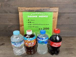 Drinks, rain gear, original goods (work gloves, T-shirts, towels, mugs, bottles, stickers, etc.)