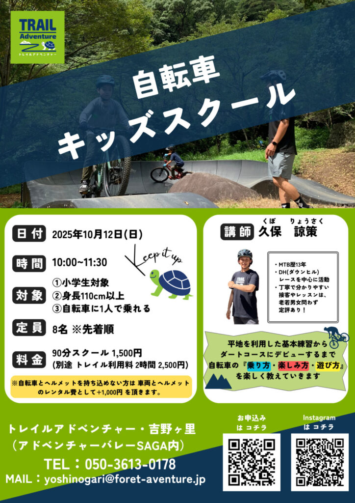 隣接するトレイルアドベンチャーにて、お子様向けに「自転車キッズスクール」を開催します!