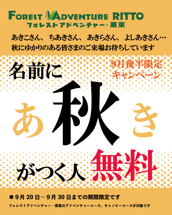 【栗東】名前に秋がつく人無料!秋のキャンペーン