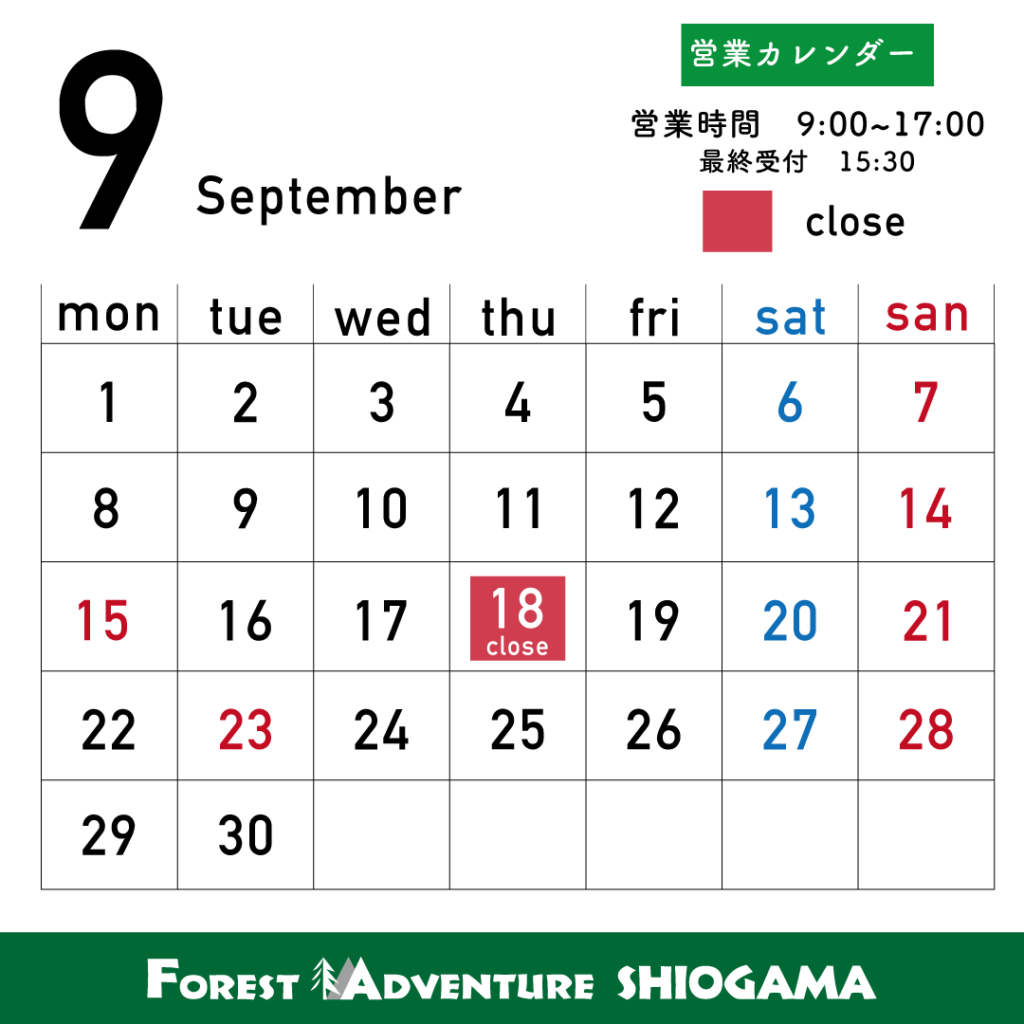 9月の営業日についてお知らせします。