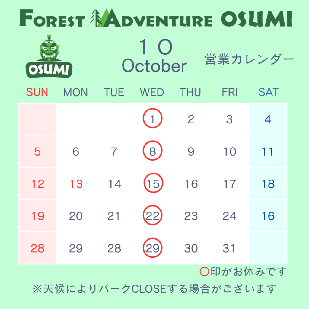 10月営業日カレンダー