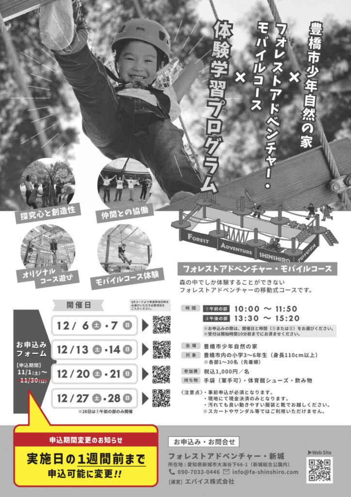 【申込期間延長】モバイルコース×体験学習プログラムin豊橋市少年自然の家
