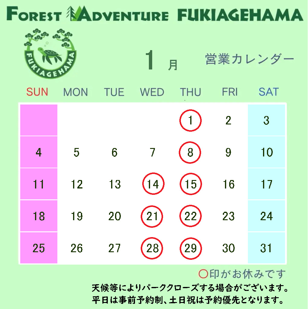 2026年🎍1月営業日カレンダー🗓️