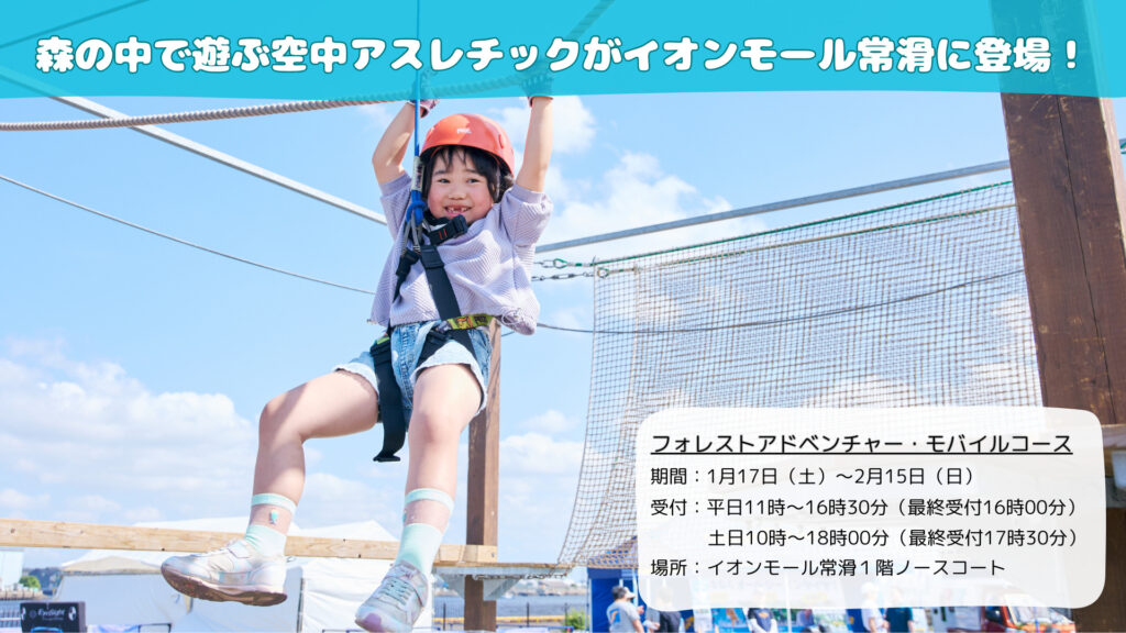 イオンモール常滑1Fノースコートにフォレストアドベンチャー・モバイルコースが初登場!