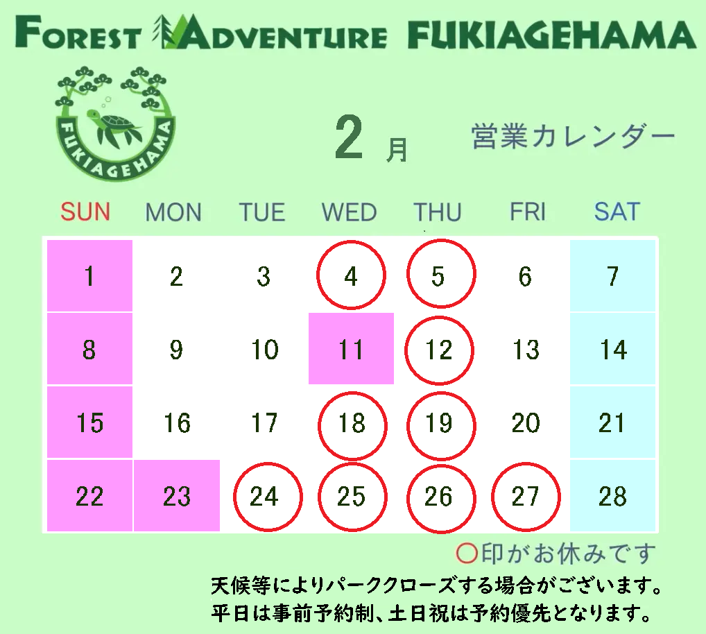 フォレストアドベンチャー・吹上浜(2月の予約はこちら)