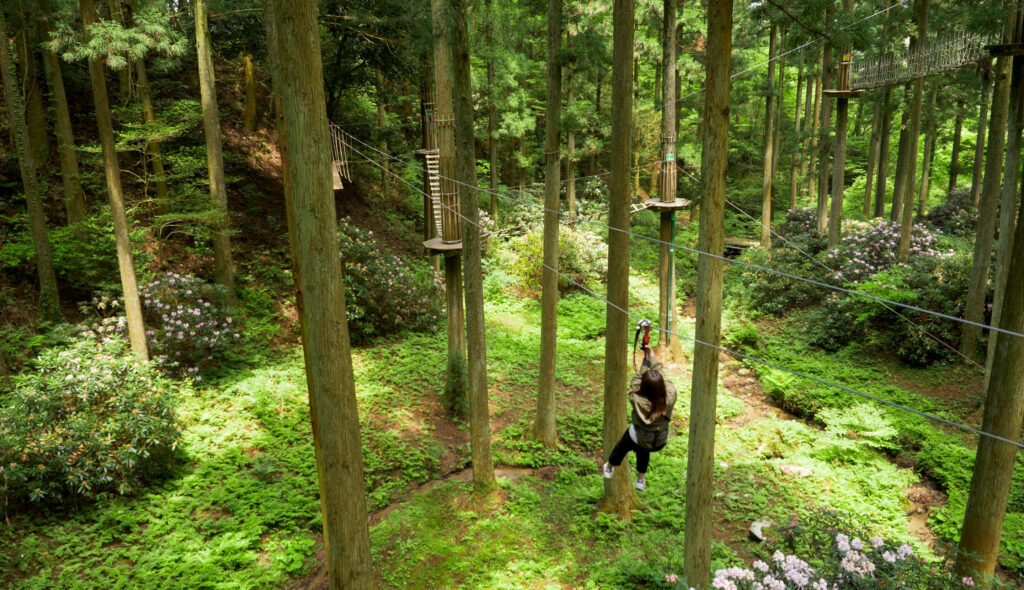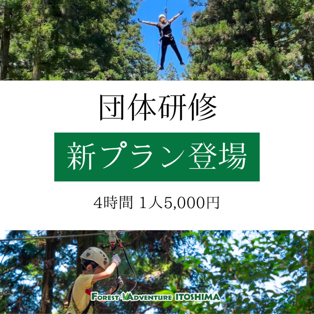 フォレストアドベンチャー・糸島では、平日の団体利用を対象に施設とコースが使える