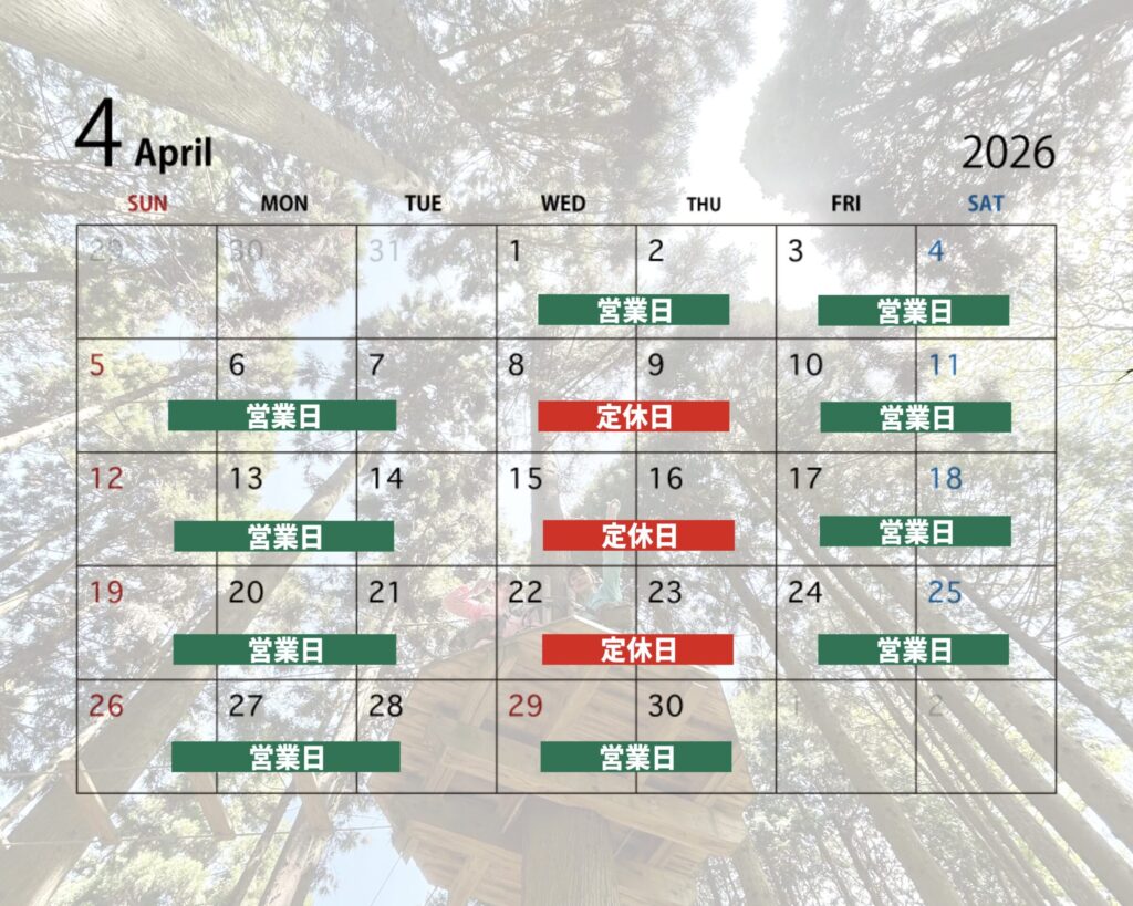 フォレストアドベンチャー・栗東では4月1日(水)から新学年でのご案内となります。