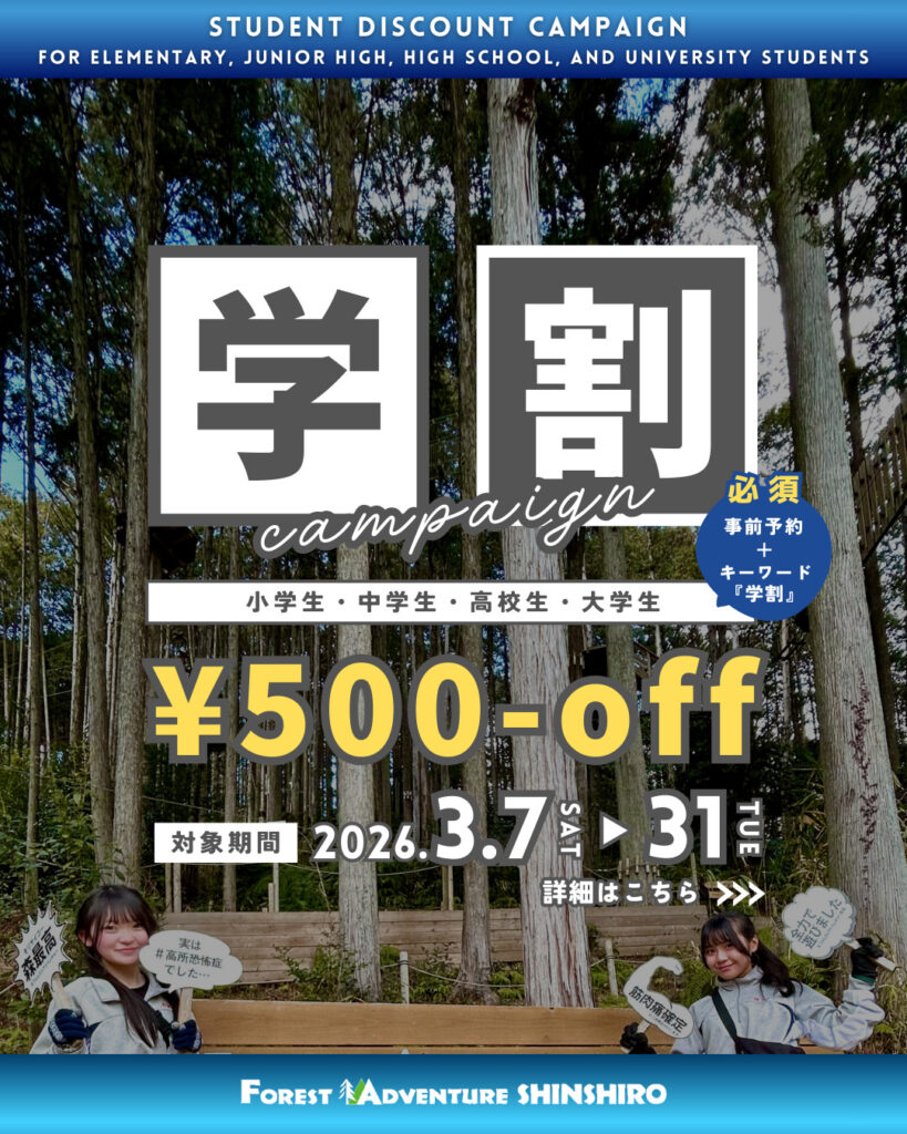 3/7(土)〜3/31(火)の期間中、小学生・中学生・高校生・大学生なら利用料金が【500円OFF】に💸
