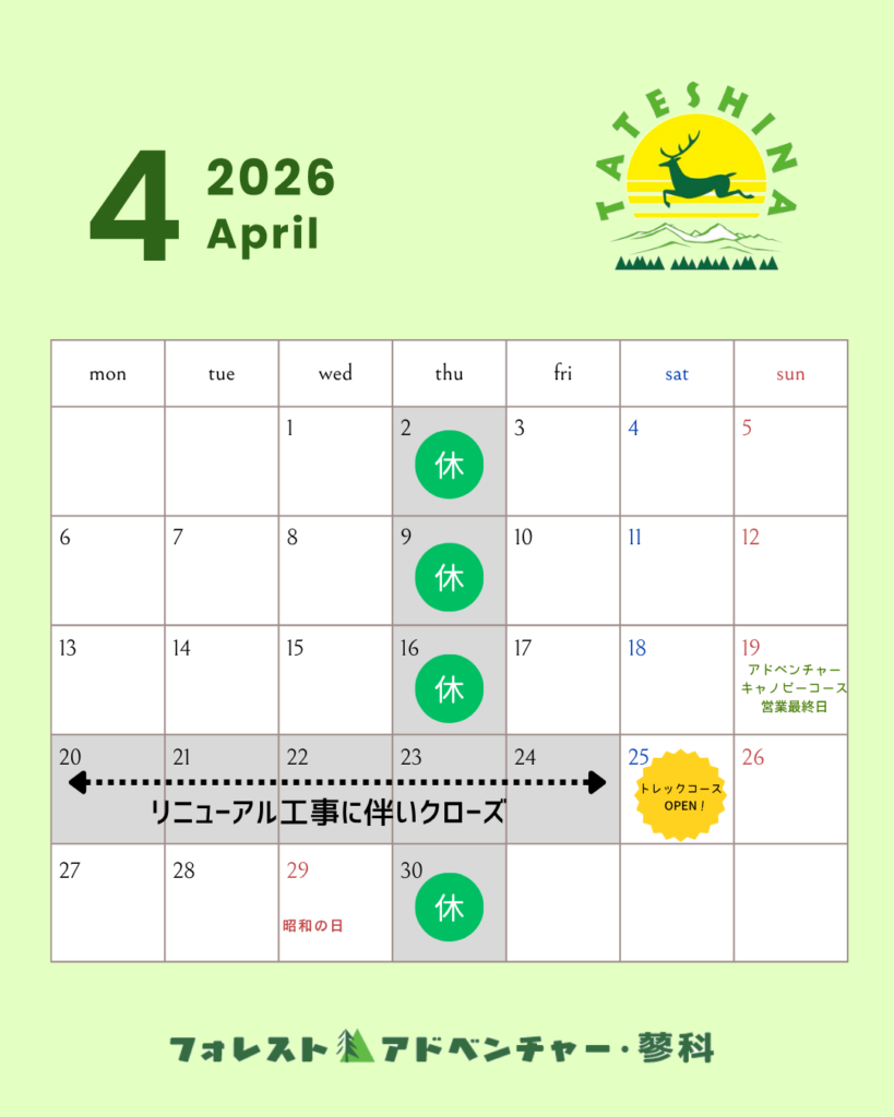 いつもフォレストアドベンチャー蓼科をご利用いただきありがとうございます✨