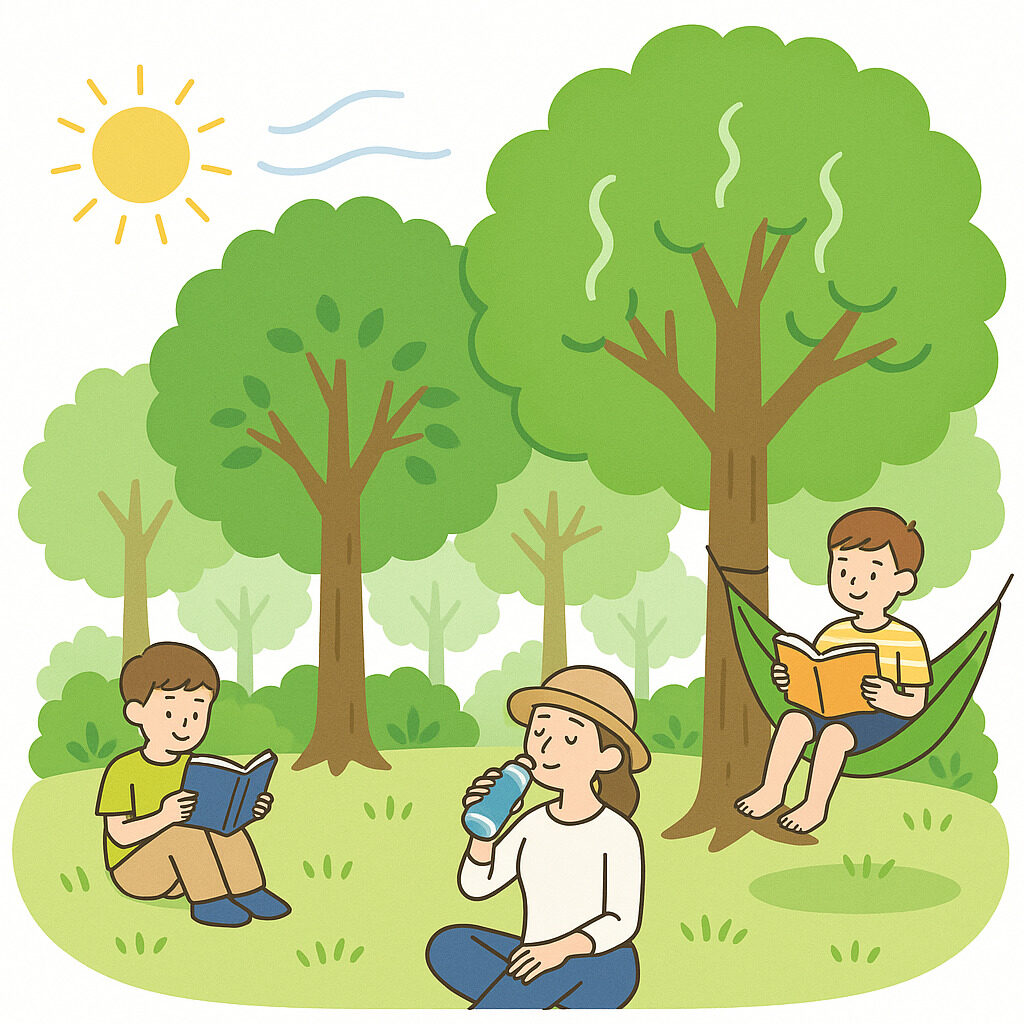 🔑森の中の日かげのキーワード「蒸散」「葉っぱの影」「自然のちからでひんやり」