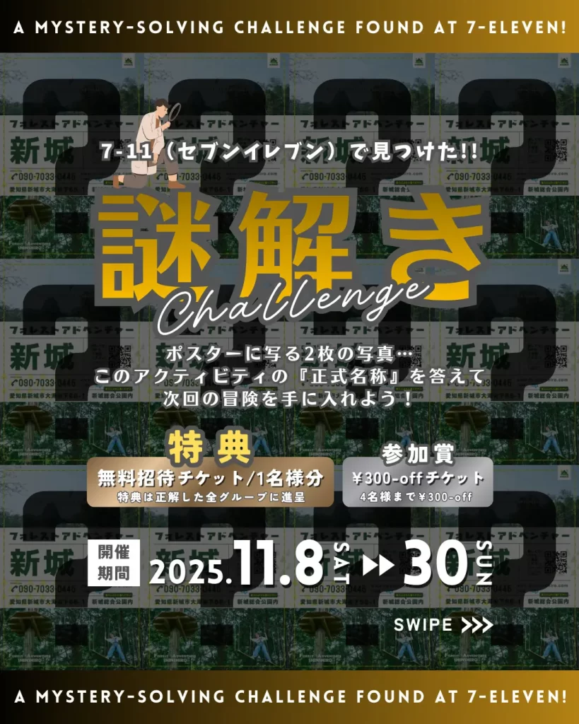 愛知県内のセブン-イレブンさんにフォレストアドベンチャー新城のポスターが登場!ポスター掲載を記念して『謎解きチャレンジ』を開催中!