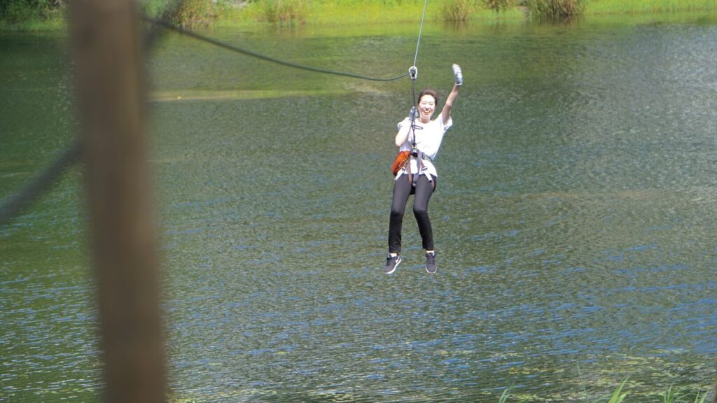 全新設置的「Zip Trip Course」以全長約 600 公尺、可俯瞰野岳湖上空的一口氣滑空長程溜索為核心。 在湖面上空滑行的獨特高度與開放感絕對是頂級享受✨迎風疾行的速度感,讓人彷彿化身飛鳥一般自由翱翔。 此外,本路線亦可與原有的「Adventure Course(冒險コース)」或「Canopy Course(登山蓋コース)」組合遊玩,讓您更加盡情地享受森林探險的樂趣。
